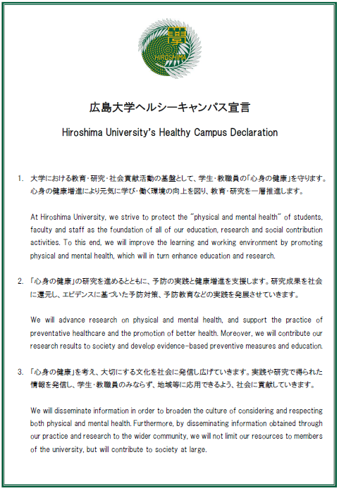 広島大学は、2022年3月24日にヘルシーキャンパス宣言を行いました