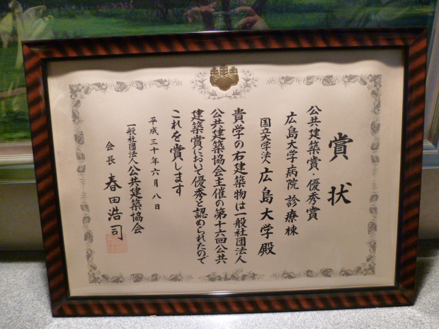 一般社団法人公共建築協会が、優れた設計や施工で地域に貢献した公共施設を表彰する「第16回公共建築賞『公共建築賞・優秀賞』」に、広島大学病院診療棟(広島市南区)が選ばれました。
