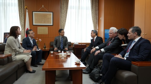 After the signing ceremony, HU President Mitsuo Ochi, University of Idaho President C. Scott Green, and Minister Counselor Ernst paid a visit to Akio Fujiwara, Administrative Vice Minister of the Ministry of Education, Culture, Sports, Science and Technology (MEXT). Administrative Vice Minister Fujiwara showed his strong support for the program, saying, “I have high hopes that this new endeavor will contribute to the cooperation between both countries and the development of international exchange at Japanese universities. We at MEXT will do our utmost to support this program.”