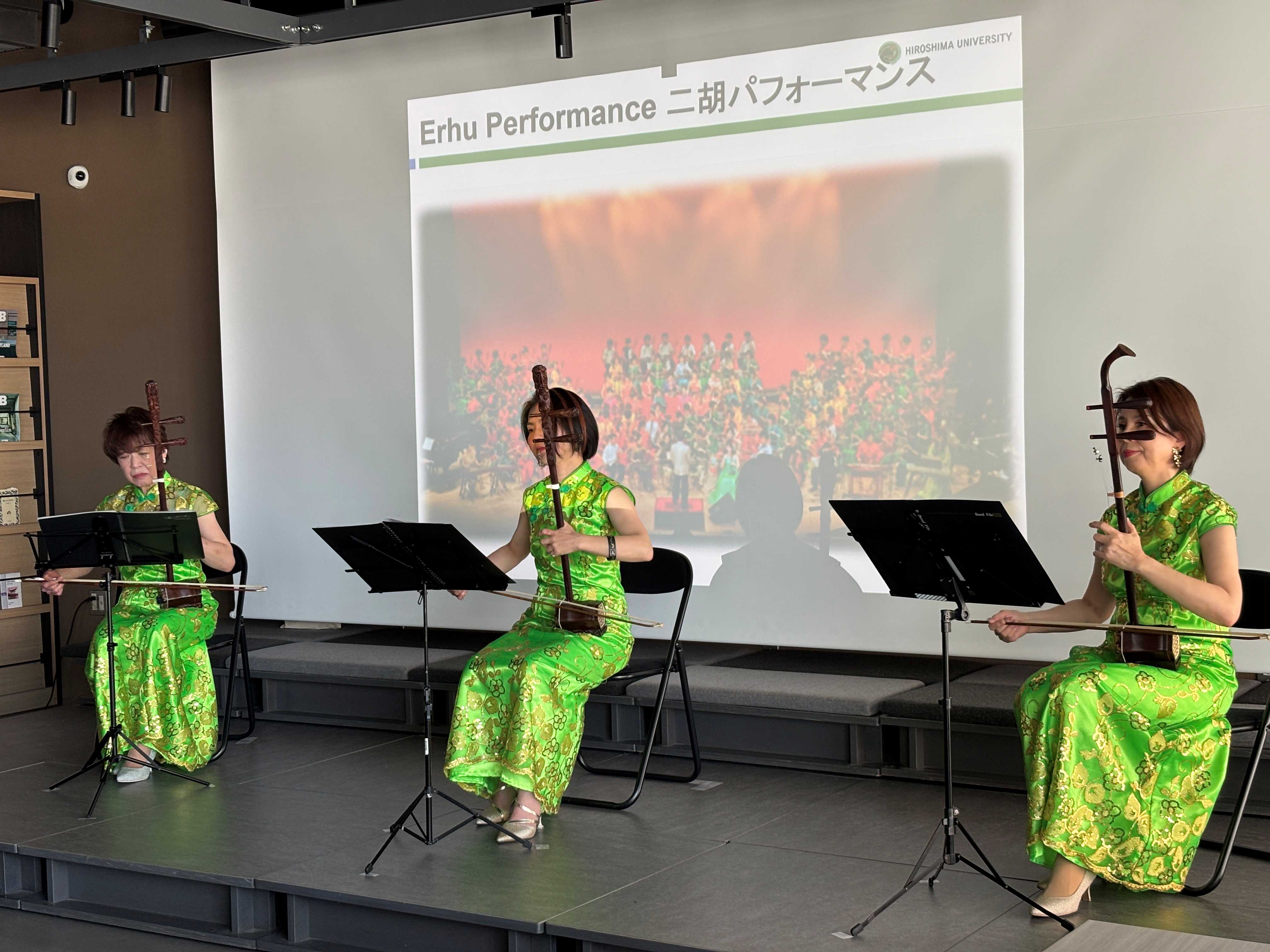 International students from Asian countries and regions (China, India, Indonesia, Pakistan, Thailand, Vietnam) hosted booths to introduce the history and culture of their home countries. They also engaged the audience with stage performances featuring the languages, festivals, food, and so on. Aside from that, performance of "Erhu -a Chinese musical instrument-" by the members of the Niko Ongakuin brought great excitement to the venue. Higashi-Hiroshima City also set up a booth, providing disaster prevention information to citizens and participants.