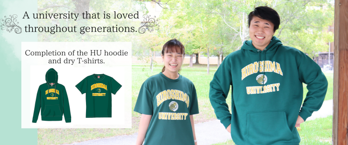 The new clothing line is designed with the school color, dark green, and the university logo sandwiched between the words “HIROSHIMA UNIVERSITY.” It is intended to be a long-lasting favorite among our university’s merchandise.