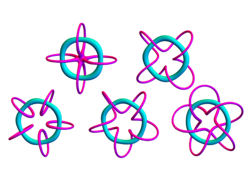 3D plots of numerical solutions for the knot solitons. (Courtesy of Muneto Nitta/Hiroshima University)