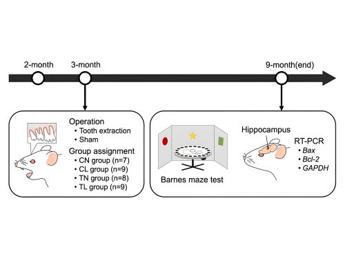 “Our study examines whether tooth loss itself, independent of nutritional deficiency such as a low-protein diet, can cause cognitive decline in male mice.”