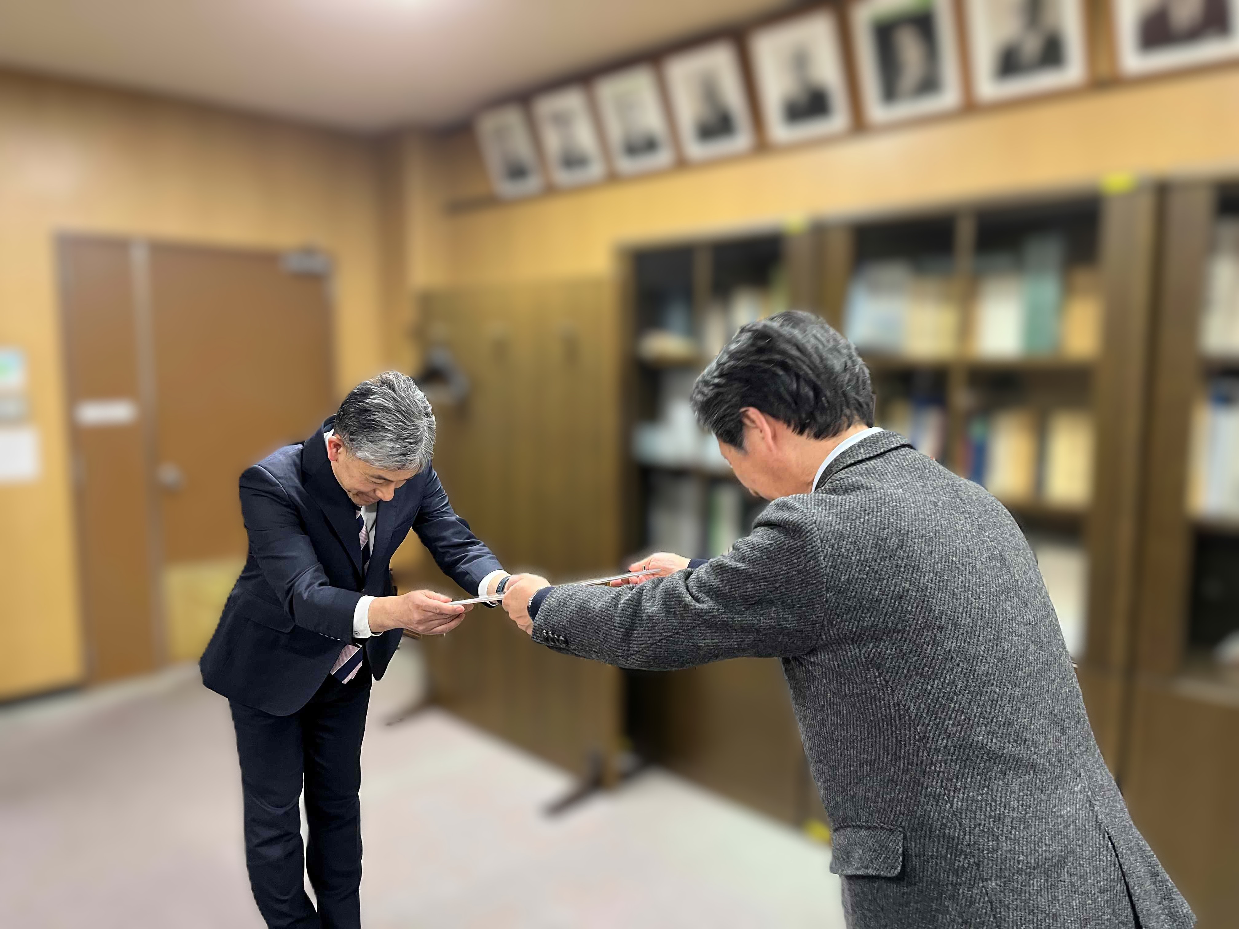 写真左から 小野校長(附属中・高),喜田教諭,由井副理事(附属学校担当)