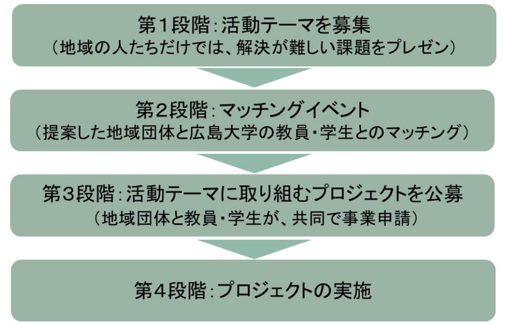 この事業は、広島大学の学術的な蓄積や教員・学生等の力を活用し、地域社会が直面する課題の解決や地域の活性化のために貢献することを目的とした、広島大学の地域貢献事業です。