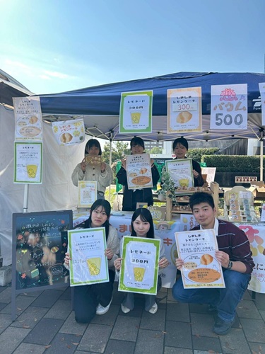 今回はいつも活動に協力してくださっている島ごころ様のブースで、しましまレモングループと隣同士で販売しました。島ごころの奥本隆三社長様には、準備段階から販売中まで常に気にかけていただきました。また、島ごころ様のレモンケーキを目当てに来られたお客様にも私たちの活動を紹介してくださり、より多くの方に興味を持っていただくことができました。本当にありがとうございます。さらに、しましまレモングループとも準備段階から話し合いを重ね、協力しながら販売をすることができました。普段は別々に活動することが多いため、互いの活動を知り交流を深めるよい機会となりました。