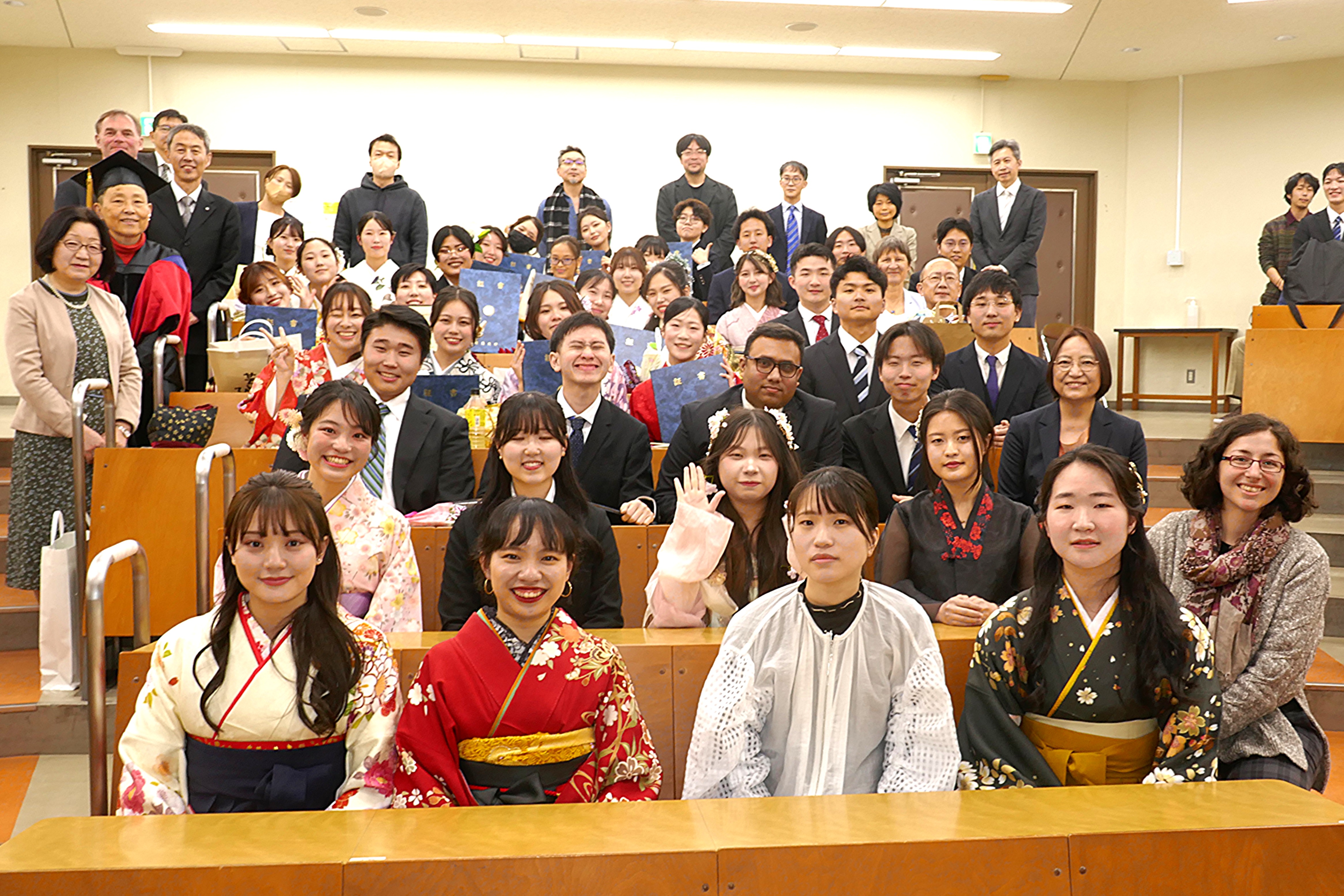 2026年3月23日、総合科学部学位記伝達式が行われ、フンク学科長からIGSの卒業生ひとりひとりに学位記が手渡されました。