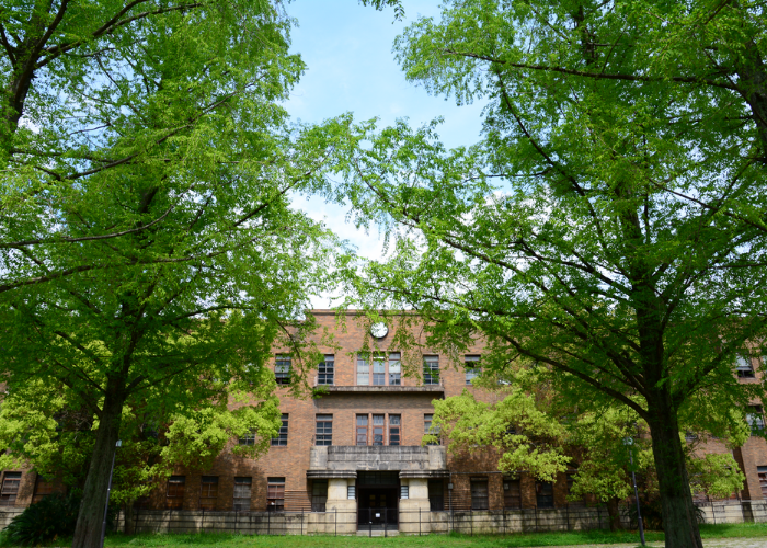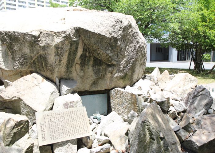 隣接する東千田公園 旧理学部1号館(被爆建物)
