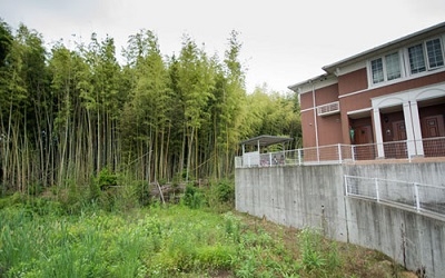 The apartment building is a two-story row house, from which we have a two bedroom apartment on the second floor. In addition to the two bedrooms, there is a unit bath, a washroom, a kitchen, a living room and a balcony. The neighborhood is quiet and is surrounded with a bamboo forest on one side and rice fields on the other.