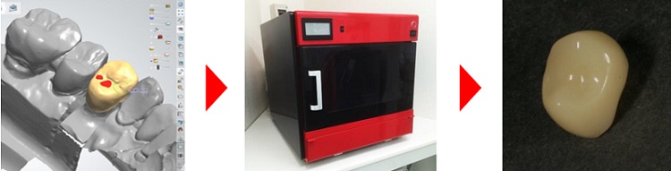 Computer Aided Design            Computer Aided Manufacturing          completed CAD/CAM crown