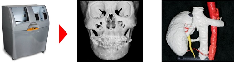 We dental technicians of this laboratory offer 3D structure models for not only dentists but also medical doctors. Accurate 3D structures of a diseased  site in each patient enable them to select an appropriate therapeutic method, and to do rehearsals for the operation with medical staffs. Thus, effective use of 3D structure models enable doctors to accomplish accurate and safer surgery, and to shorten surgical time.