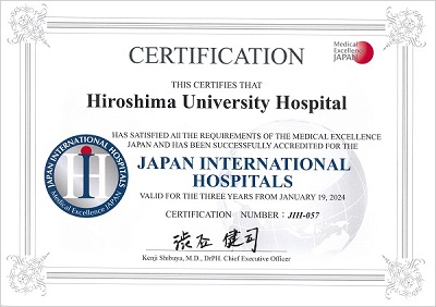 JIH is a system under which Medical Excellence JAPAN (MEJ) evaluates hospitals that are willing to receive international patients by assessing hospital systems, efforts, and achievements in diagnosis and treatment provided in departments, and recommends hospitals that meet the prescribed criteria. The evaluation is reviewed every three years, and on January 19, 2024, our hospital underwent evaluation and was approved for renewal.