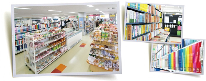文具、書籍、日用品、食品などの販売や、旅行チケットの手配などさまざまなサービスを提供しています。組合員割引により、定価よりも安く購入できる商品が数多くあります。