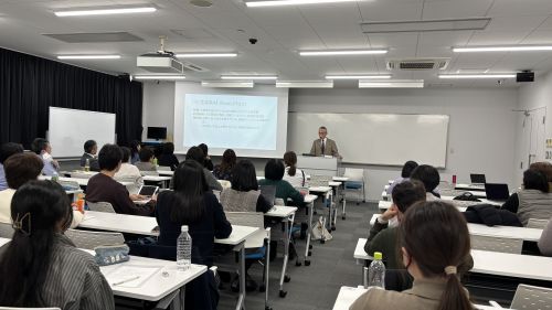 今回は、「生成AI時代の日本語教育評価: プレースメントからキャリア教育まで」をテーマに、伊東祐郎氏(国際教養大学)をお招きし、ご講演いただきました。会場となった広島大学東千田未来創生センターには、広島、岡山、山口、徳島の中国・四国地区の日本語教育関係者37名が参加しました。
