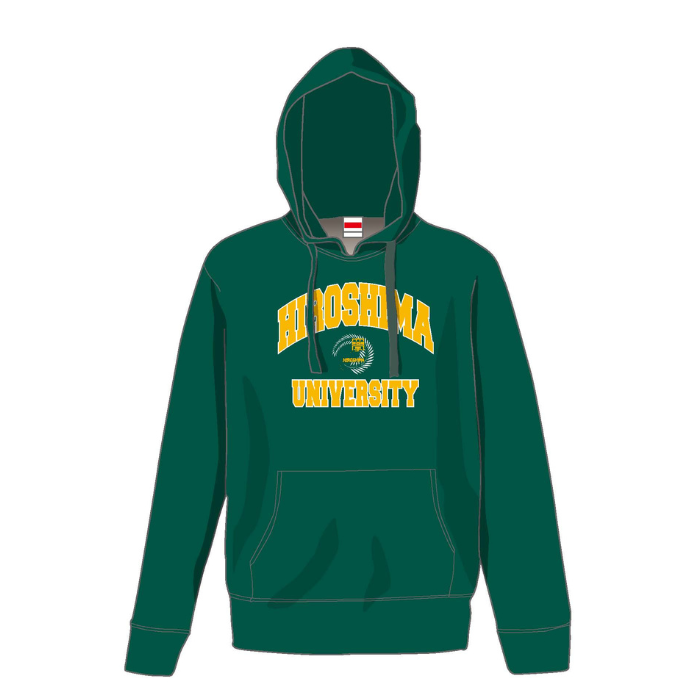 基本コンセプトは、学章の3色(グリーン、ゴールド、シルバー)を使用したデザインです。ボディは本学のスクールカラーのグリーンを使用し、ロゴは大学の英語名称である「HIROSHIMA UNIVERSITY」の文字の間に学章を挟んだものにしました。「HIROSHIMA UNIVERSITY」の文字にはゴールドを基調とし、文字を強調するものとして、シルバーを使用しています。本学の定番のグッズとして長く親しんでもらえるようなデザインです。