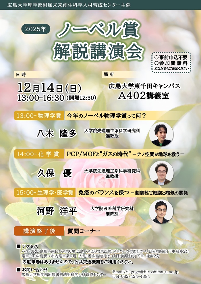 • 【2025/12/14開催・東千田】2025年ノーベル賞解説講演会を開催します