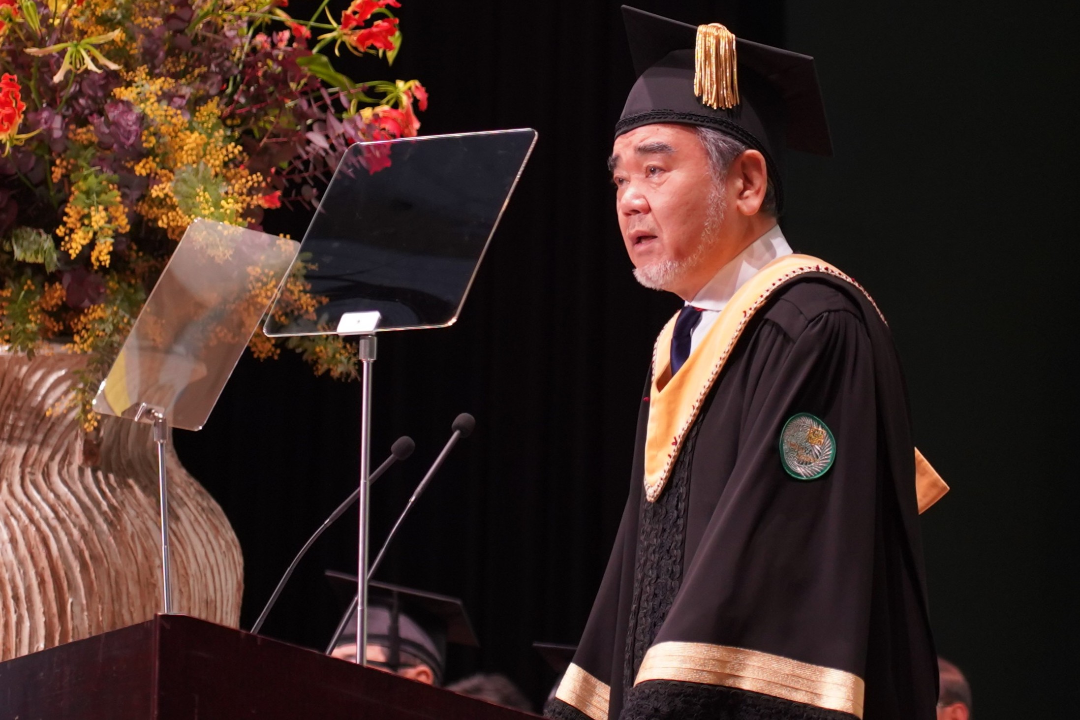 最後に、「平和を希求し、チャレンジする国際的教養人」として、それぞれの道を力強く歩んでほしいと卒業生・修了生を激励しました。