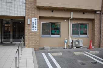 ⑥到着です。11号館1階の玄関横に管理事務室があります。