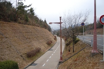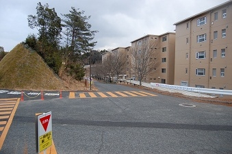 ⑤左折して,直進50m行くと右にカーブします。写真はカーブした後の景色です。右奥に11号館が見えます。