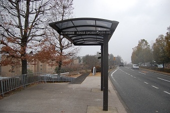 参考1:学生宿舎から大学へは,ブールバール横の歩道を500m下ります。