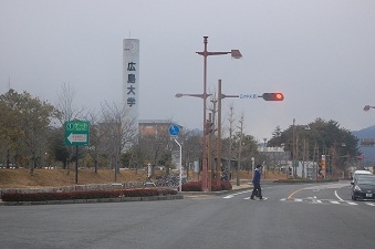 参考2:広島大学の中央口です。この信号を左折すると,理学部や本部棟があります。