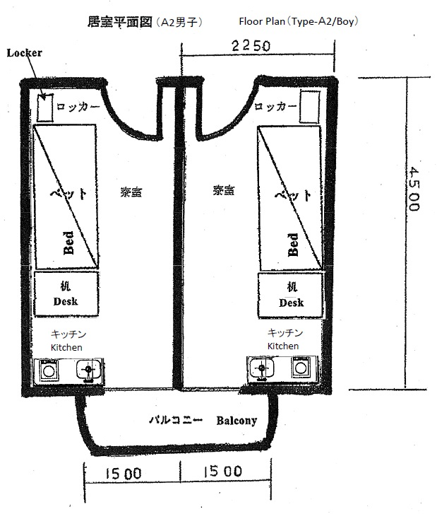 | Aタイプ:男子学生宿舎 1~4号館、7~9号館 | ||