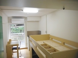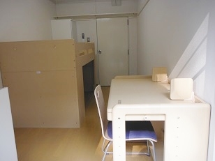 | 居 室 | 木製ロフトベッド、机、椅子、ロッカー、冷暖房機、 ミニキッチン(IH)、電話機、テレビ用端子 |