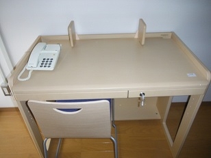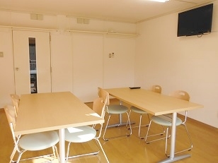 談話室にはテレビ、テーブル、椅子がおいてあります