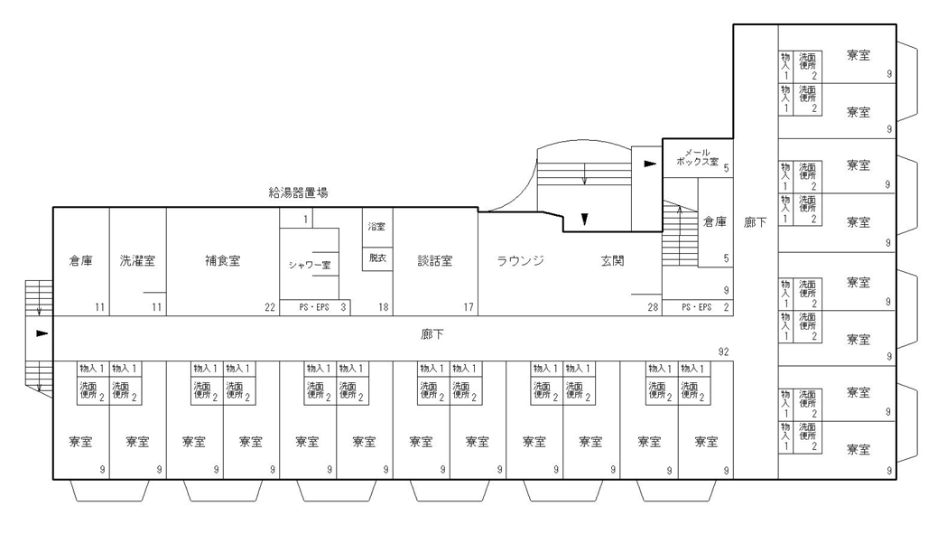 | Bタイプ:男子学生宿舎 10号館 | ||