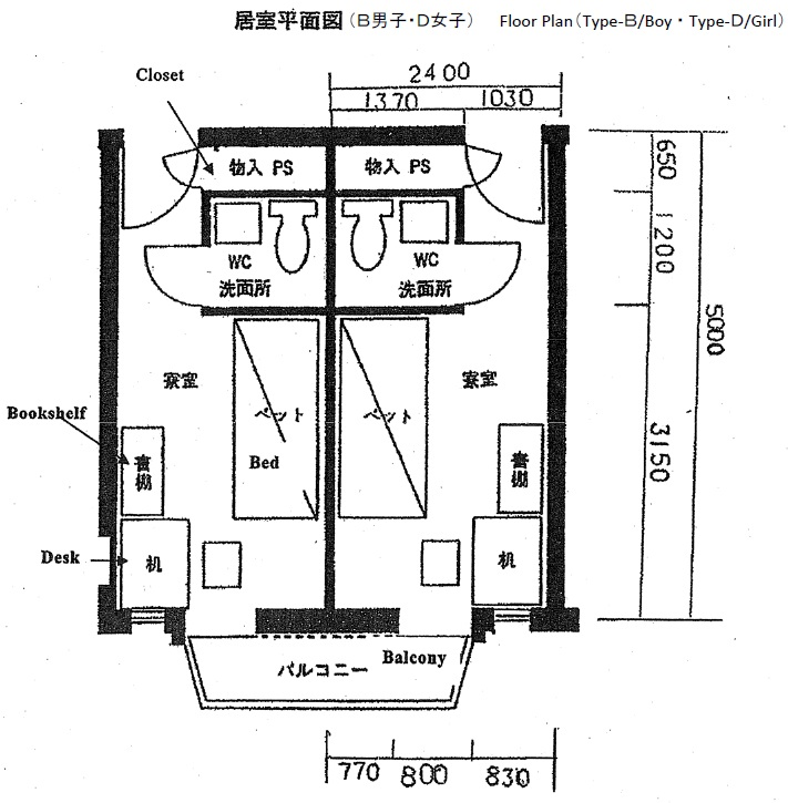男子学生宿舎 10号館(Bタイプ)/女子学生宿舎 5・6号館(Dタイプ)